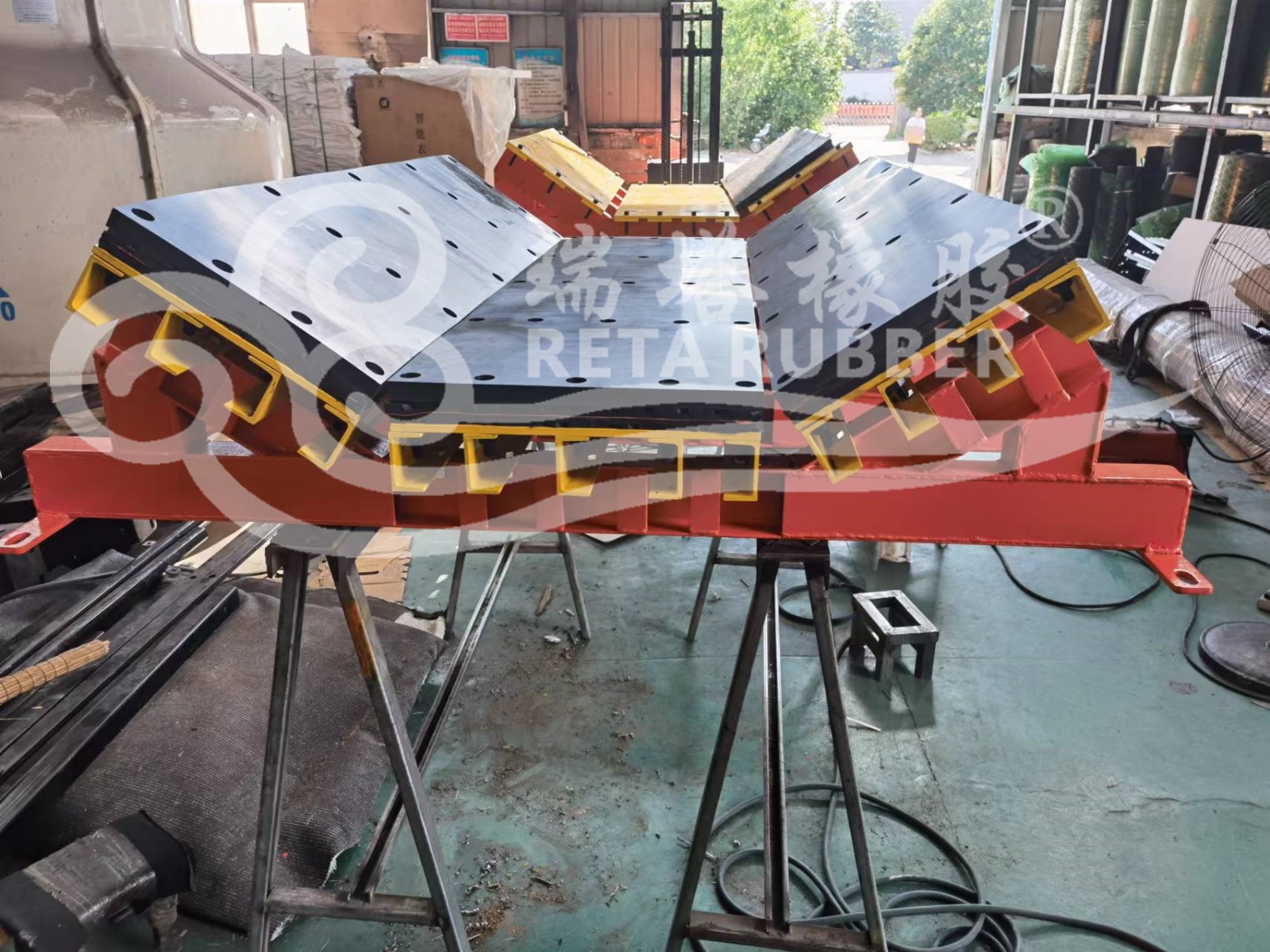 瑞塔橡膠阻燃復合式重載緩沖床發貨